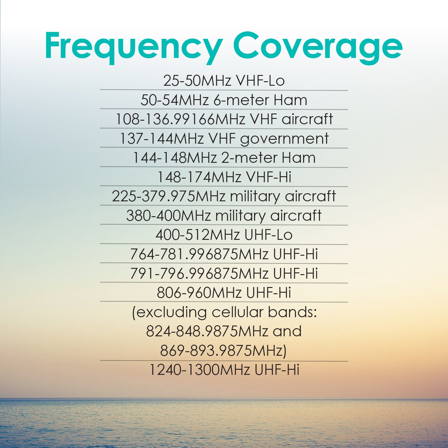 - Memory Backup - Frequencies remain stored in memory even without batteries.